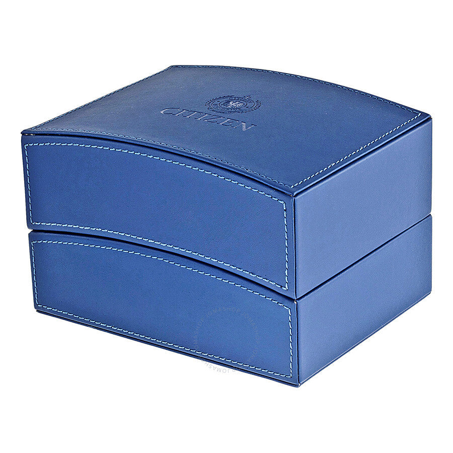 Stainless steel case with a stainless steel bracelet. Uni-directional rotating black ion-plated bezel. Silver dial with silver-tone hands and stick hour markers. Minute markers around the outer rim. Dial Type: Analog. Luminescent hands and markers. Date display appears at the 3 o'clock position. Eco-drive movement. Scratch resistant mineral crystal. Screw down crown. Solid case back. Case diameter: 43 mm. Case thickness: 10 mm. Round case shape. Band width: 22 mm. Deployment clasp with push button. Water resistant at 30 meters / 100 feet. Functions: date, hour, minute, second. Casual watch style. Citizen Signature Eco-Drive Silver Dial Stainless Steel Men's Watch BL1257-56A.