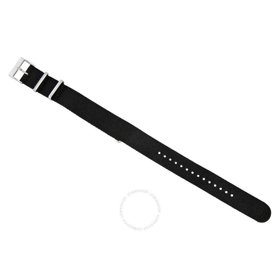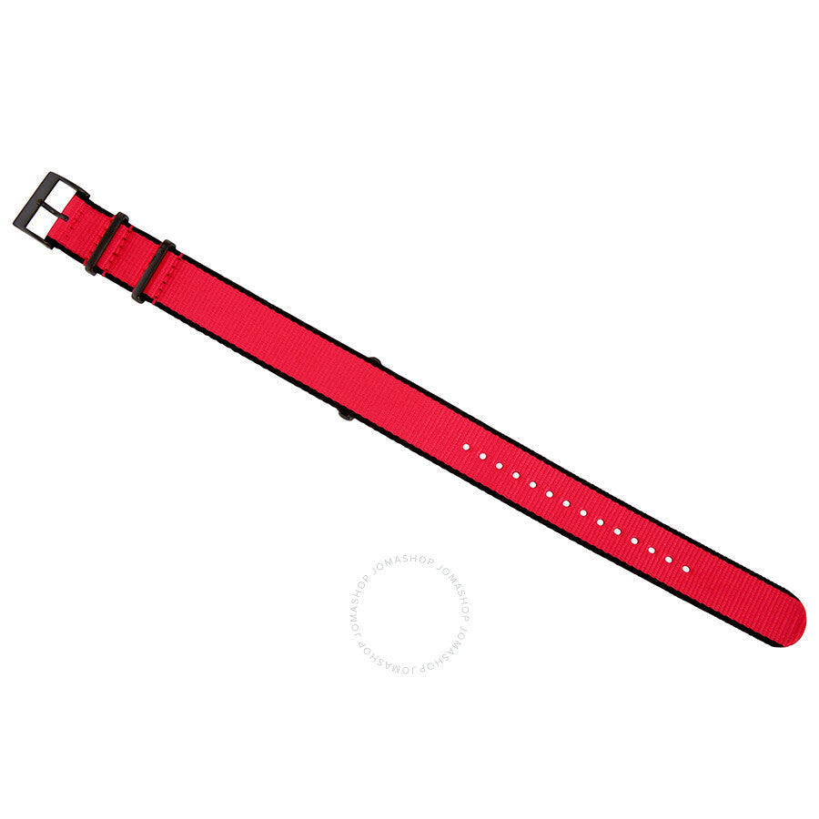 Black PVD stainless steel case with a black and pink NATO nylon strap. Fixed black PVD top ring bezel. Black dial with luminous silver-tone hands and index hour markers. An Arabic numeral appears at the 12 o'clock position. Minute markers around the outer rim. Dial Type: Analog. Luminescent hands and markers. Date display above the 6 o'clock position. ETA caliber F06.111 quartz movement. Scratch resistant sapphire crystal. Pull / push crown. Solid case back. Round case shape. Case size: 40 mm. Case thickness: 9.12 mm. Band width: 19 mm. Tang clasp. Water resistant at 100 meters / 330 feet. Functions: date, hour, minute, second. Casual watch style. Watch label: Swiss Made. Tissot Quickster Black Dial Black and Hot Pink Nylon Ladies Watch T0954103705701.