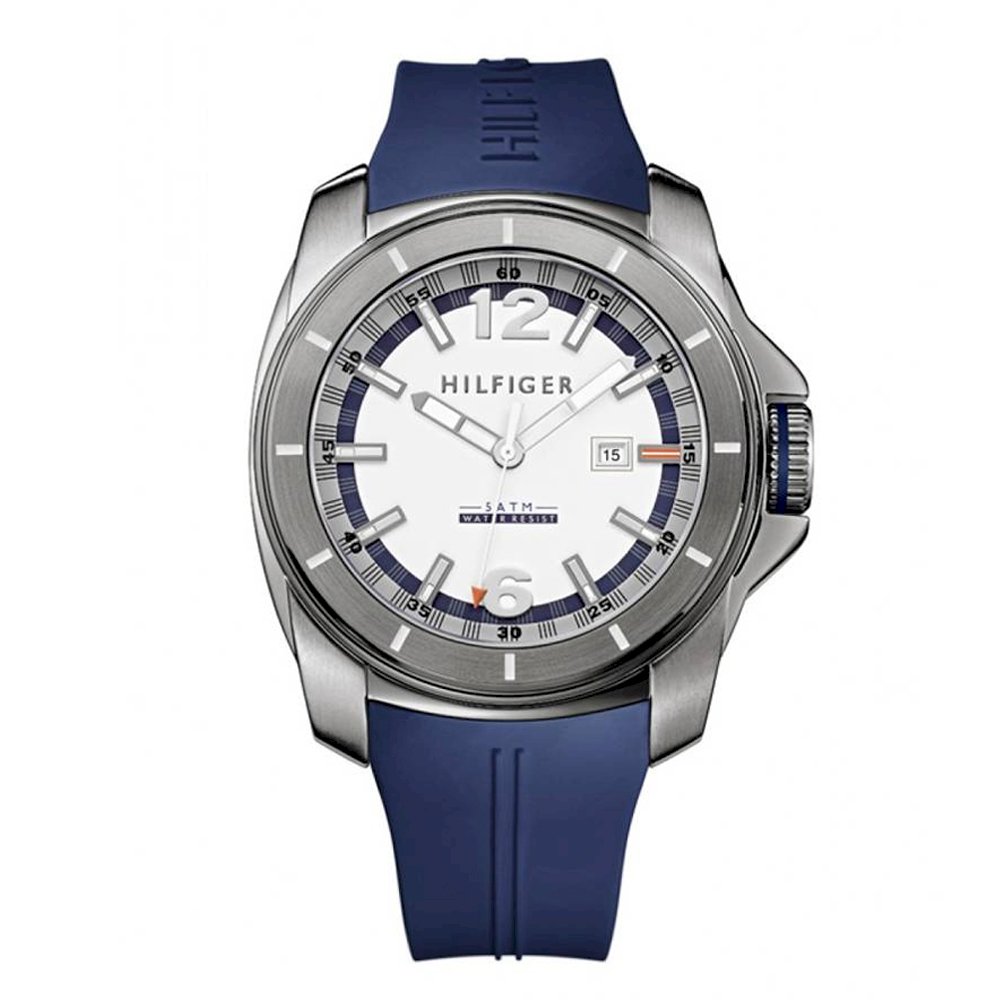 Tommy Hilfiger White and Blue Dial Rubber Strap Men's Watch 1791113